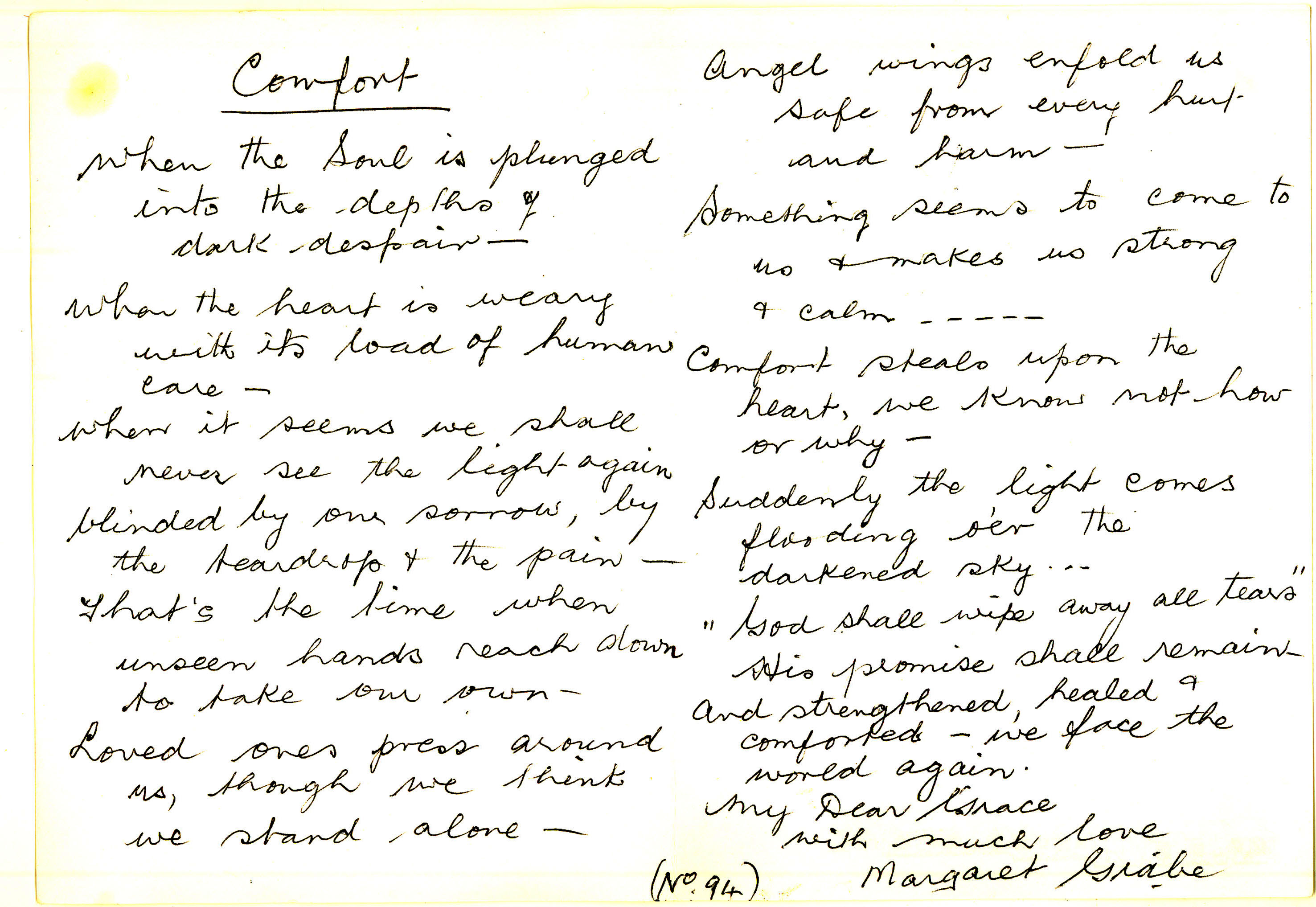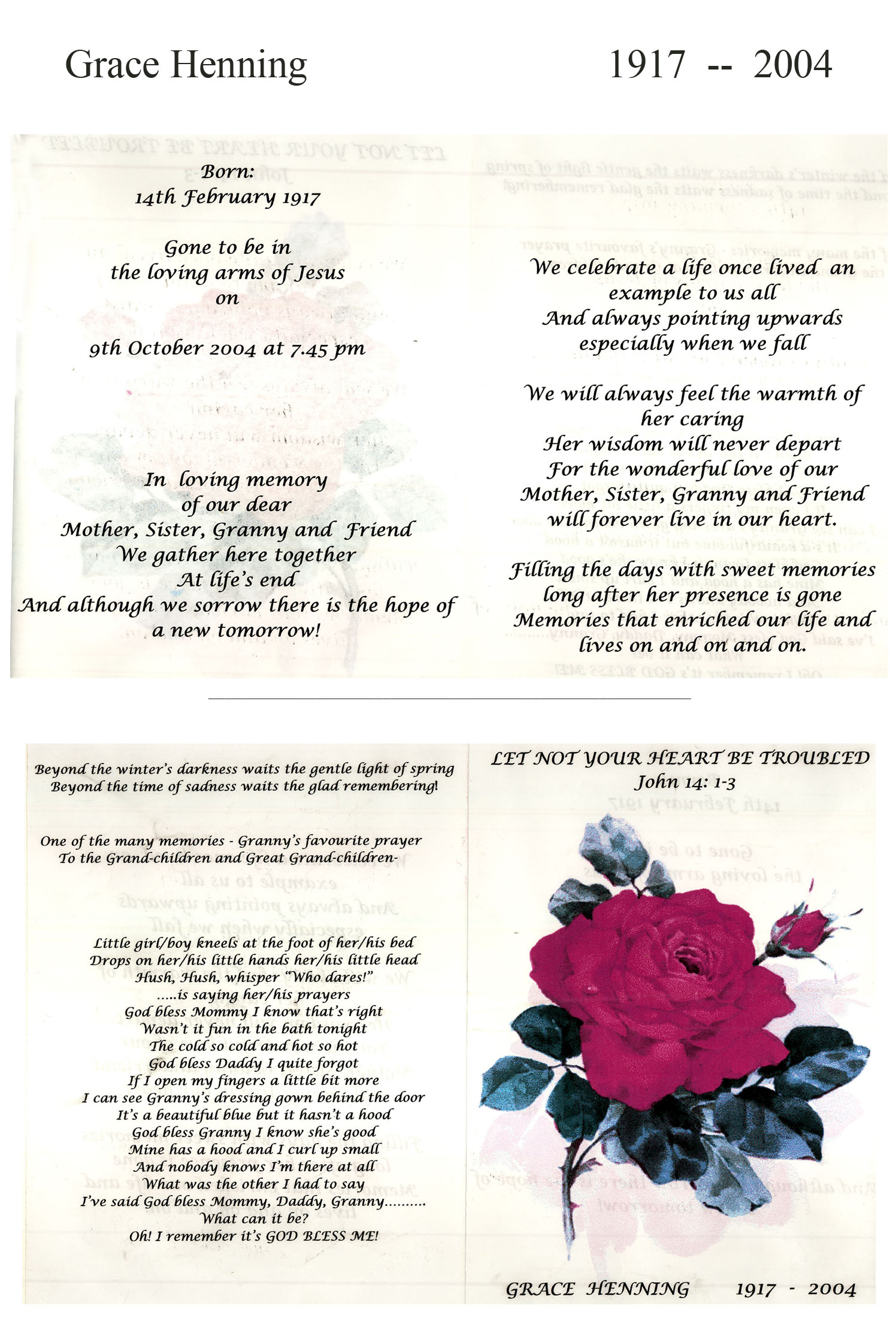 Card on Grace's passing 2004