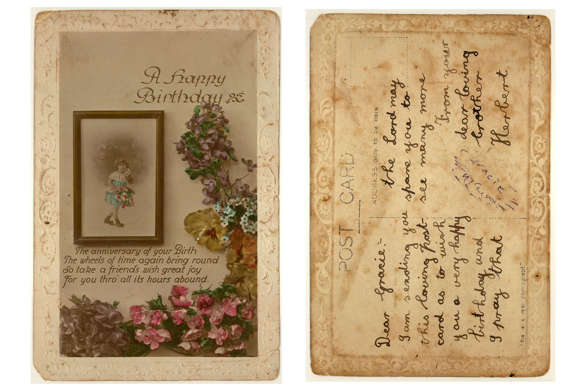 Birthday card from Herbert to Gracce