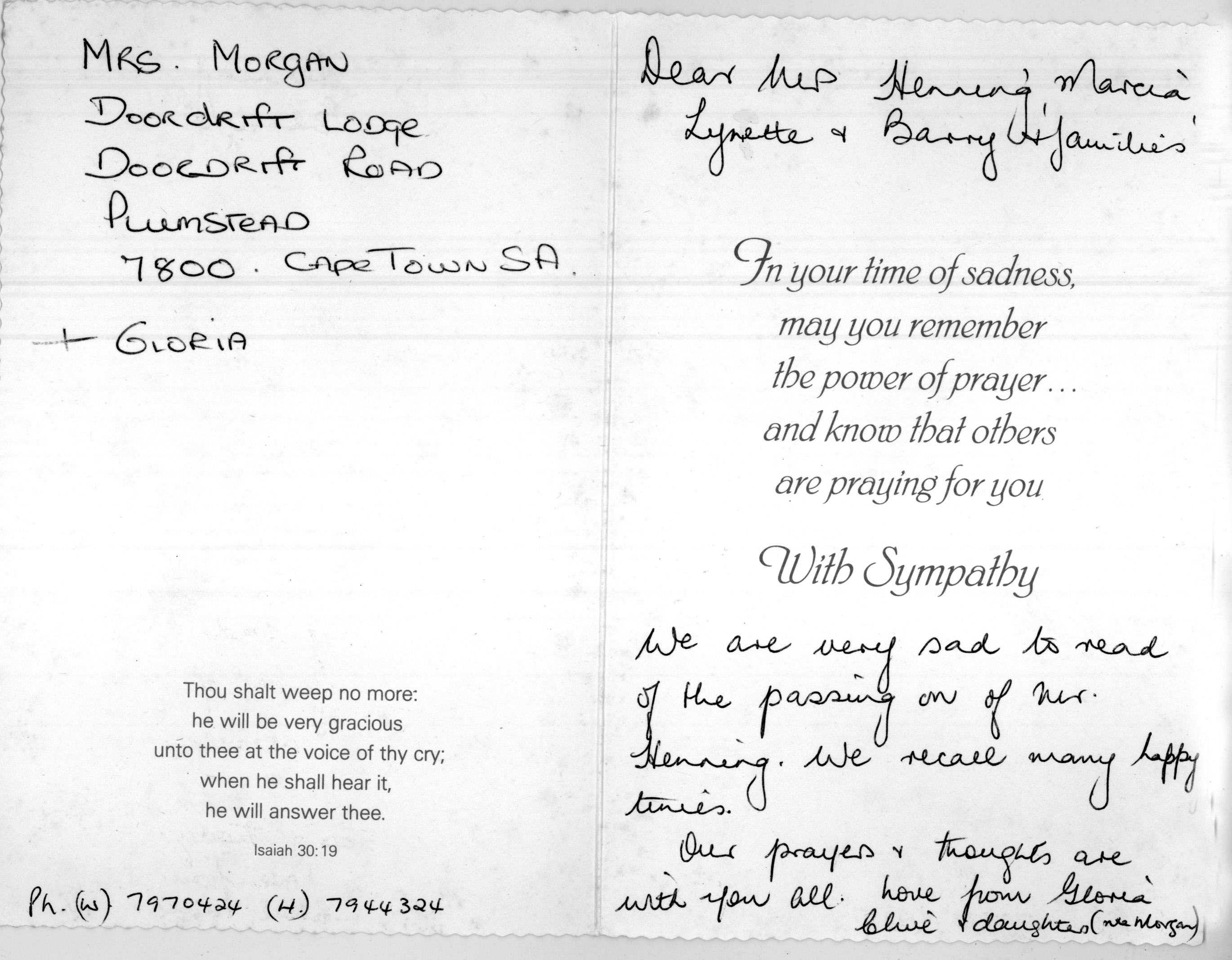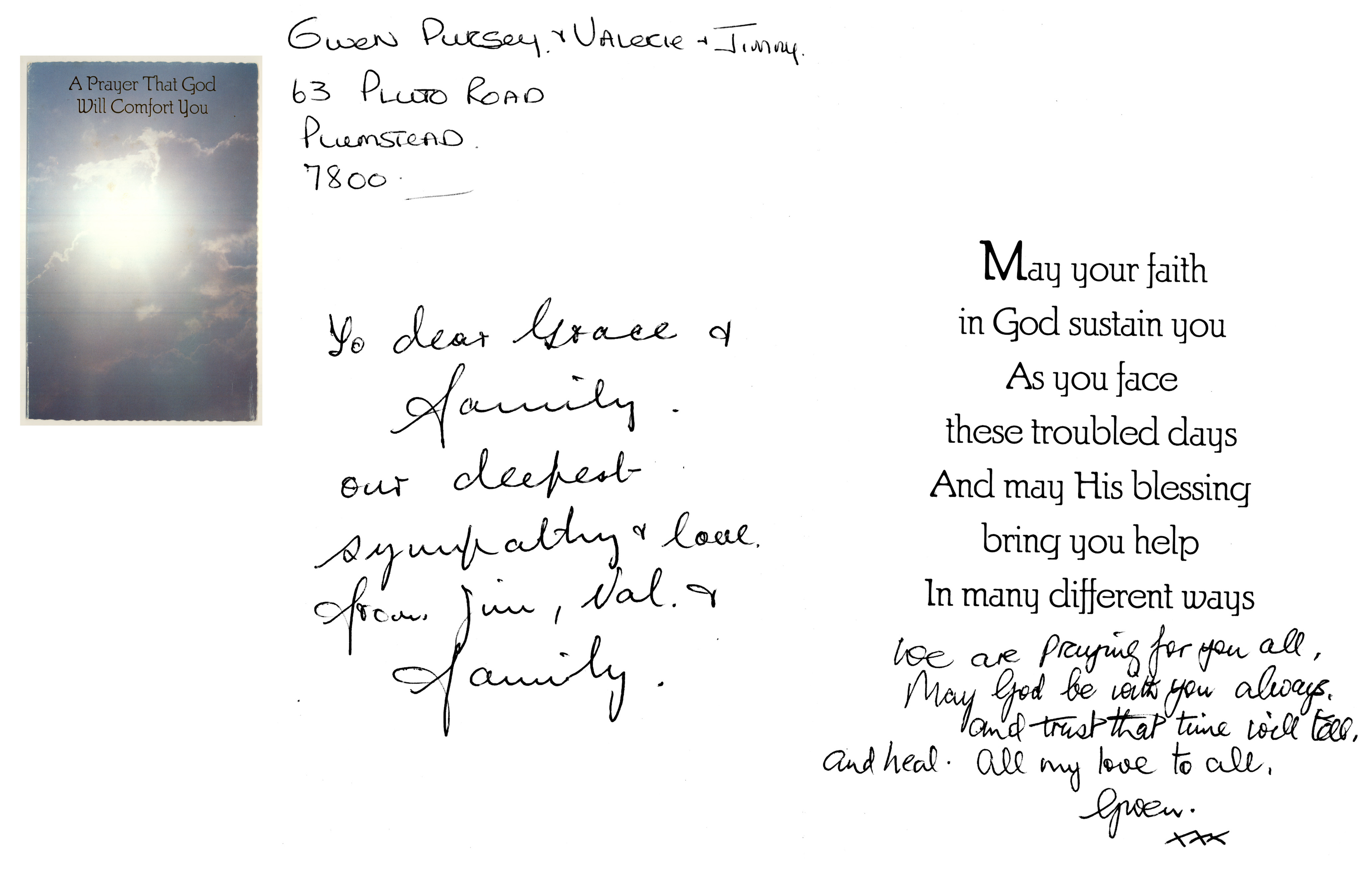 Card to Grace from Gwen Pursey on John's death