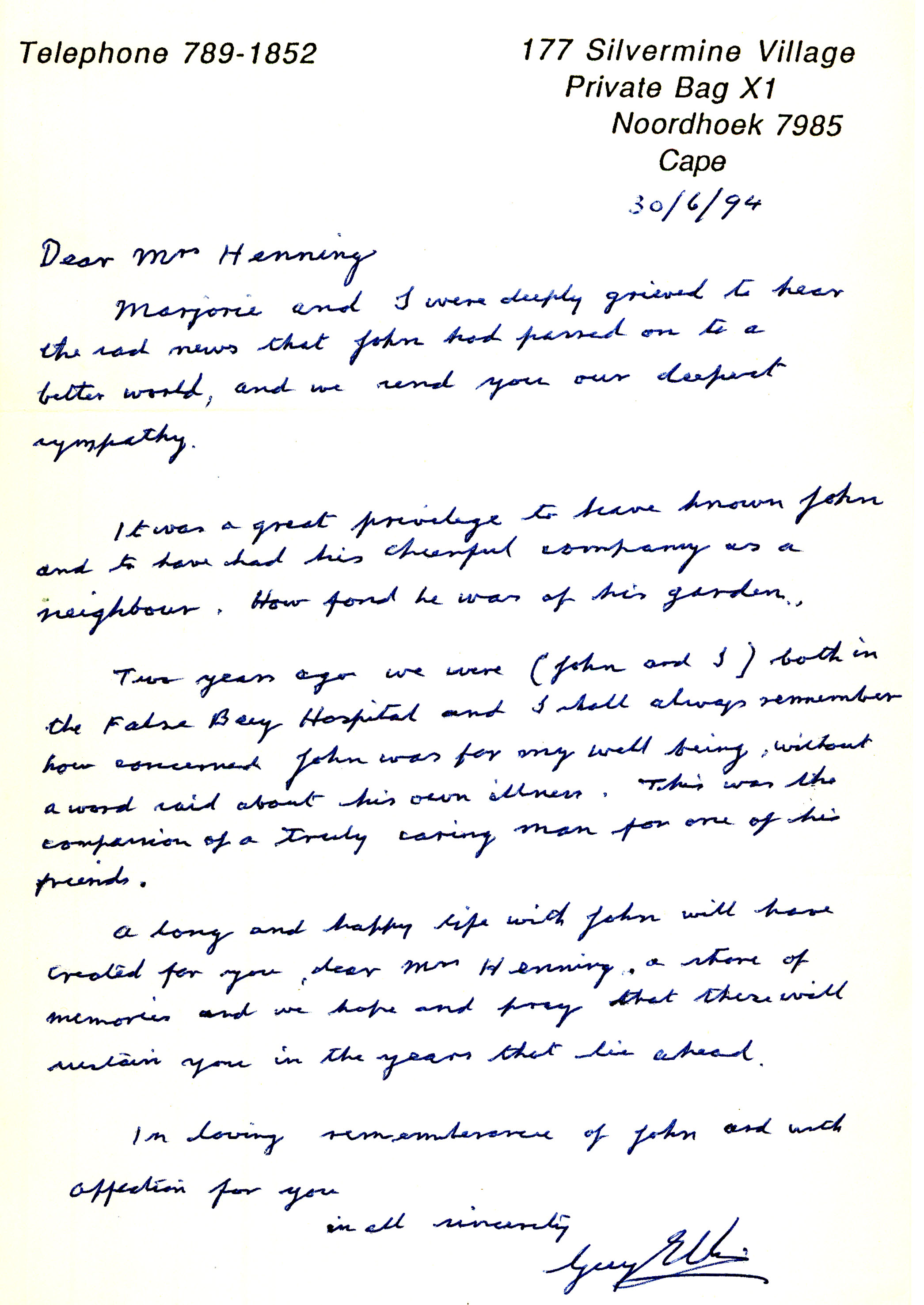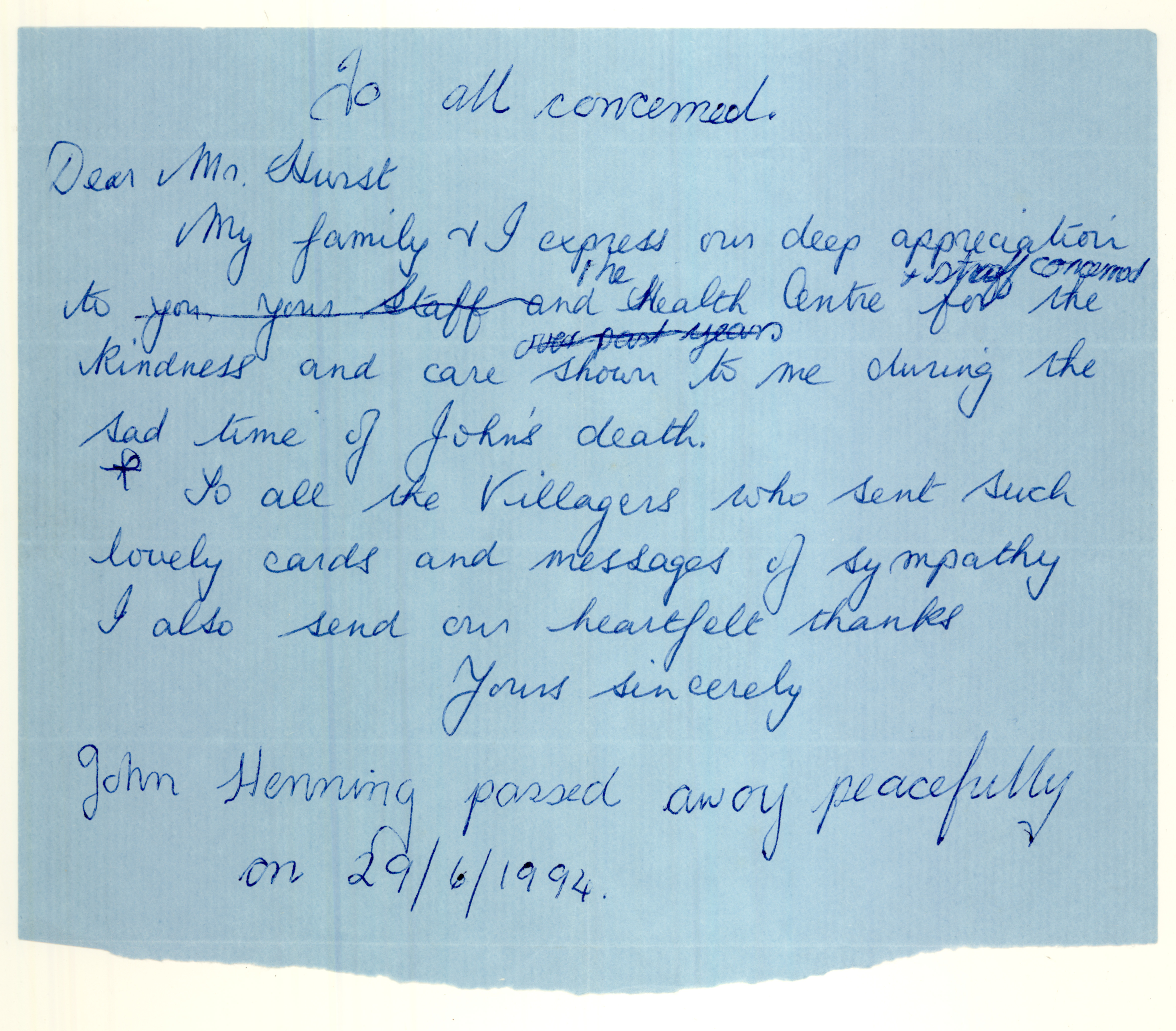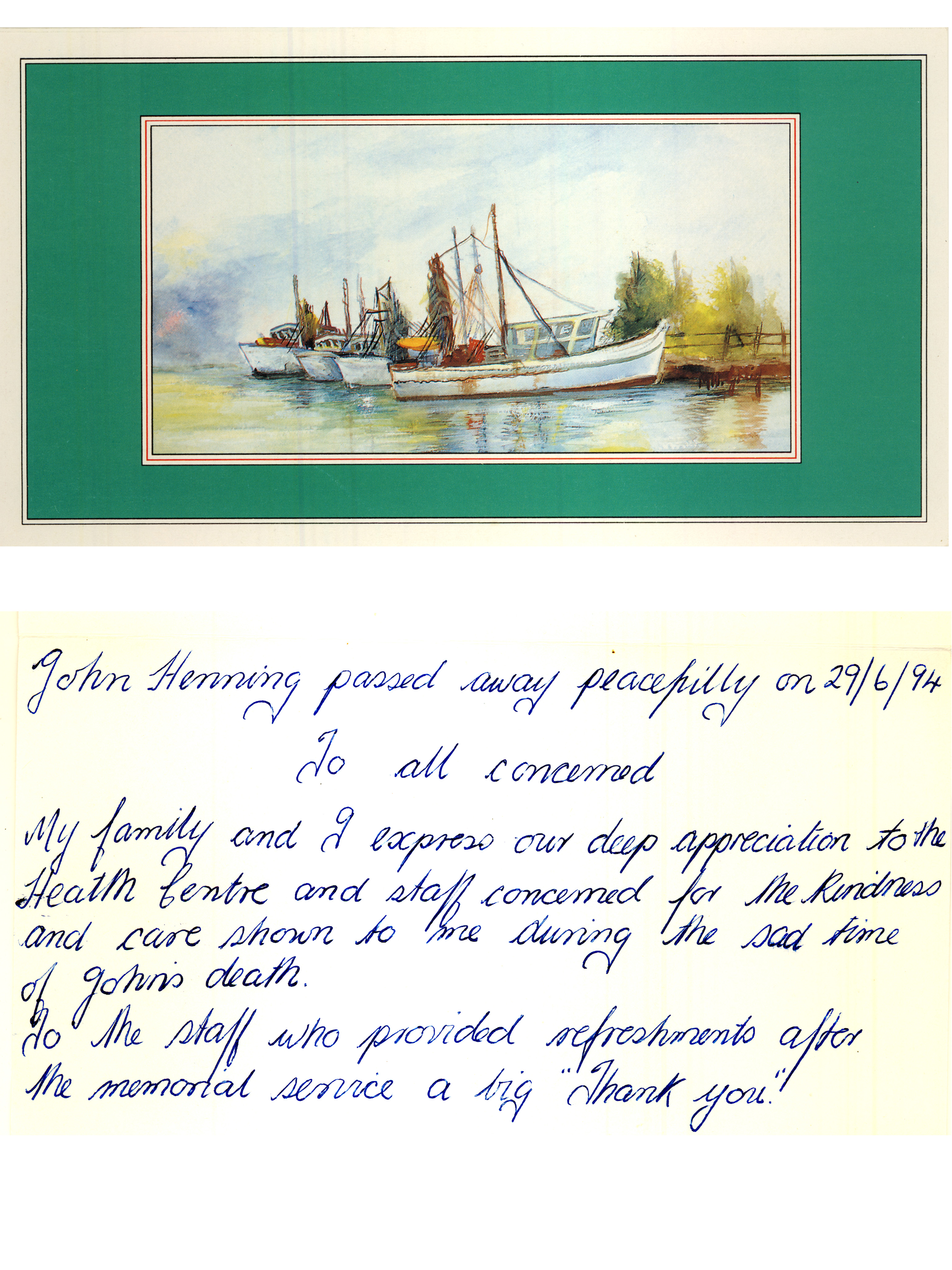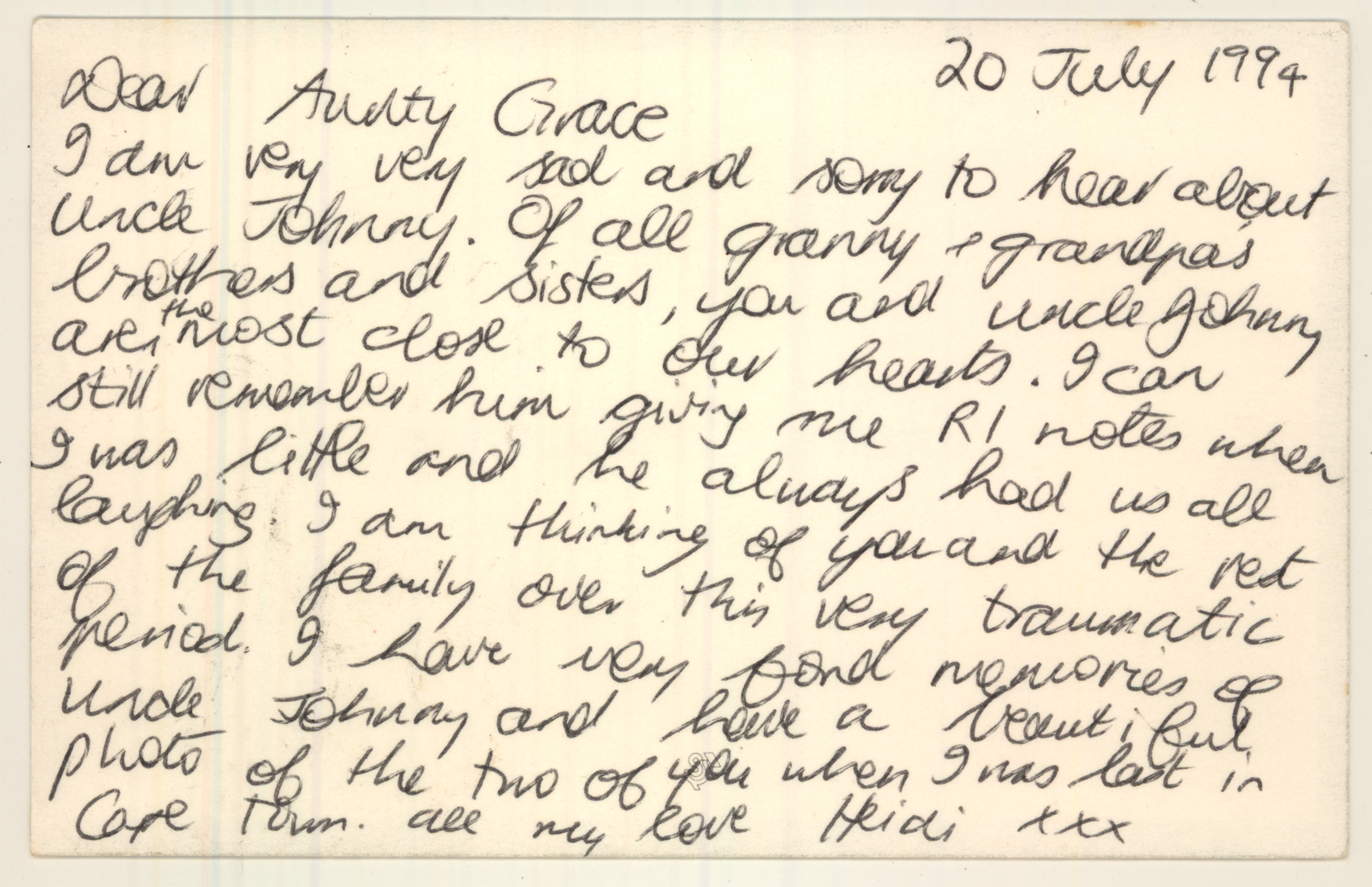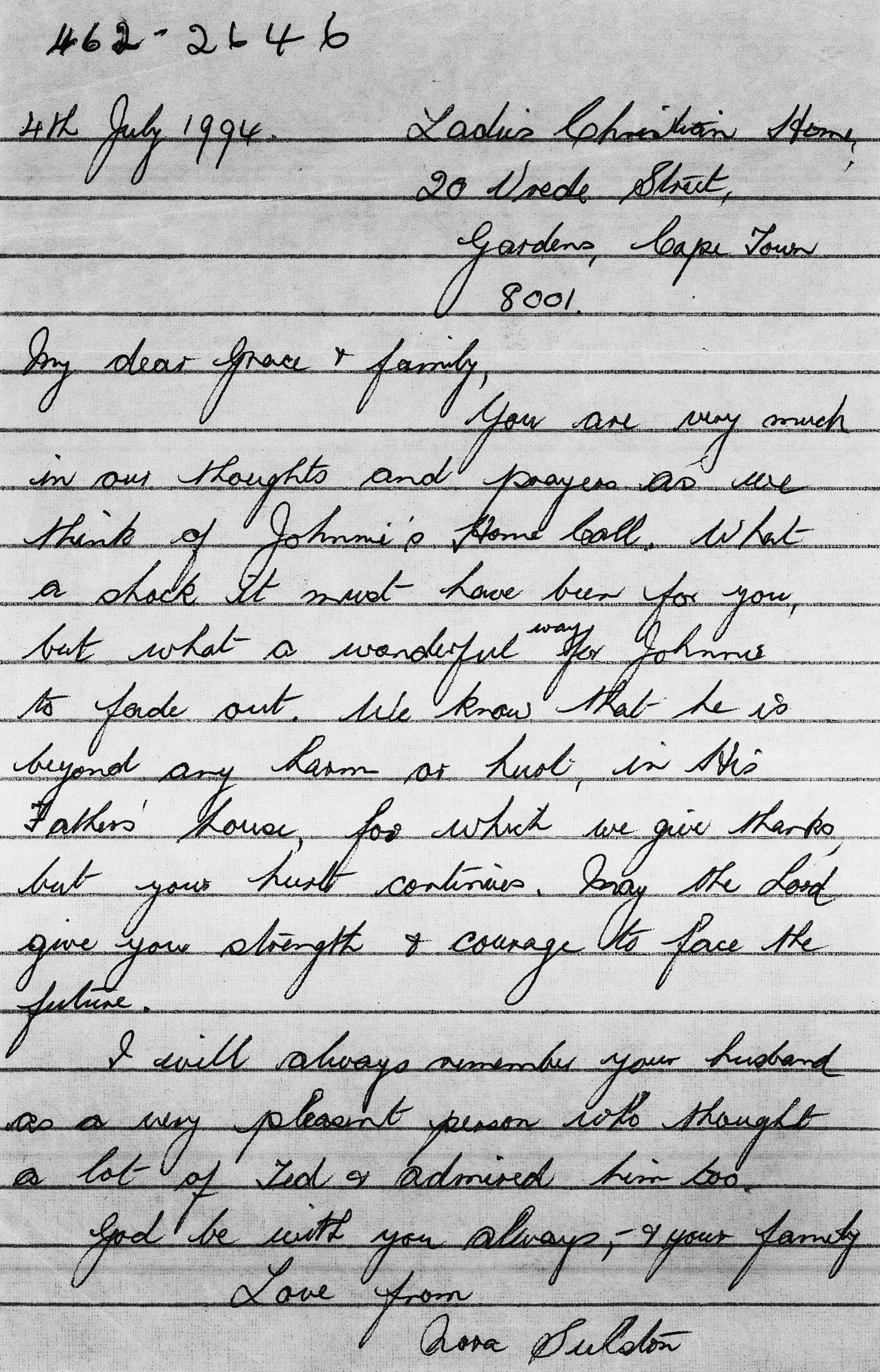 Letter on Johnny's death