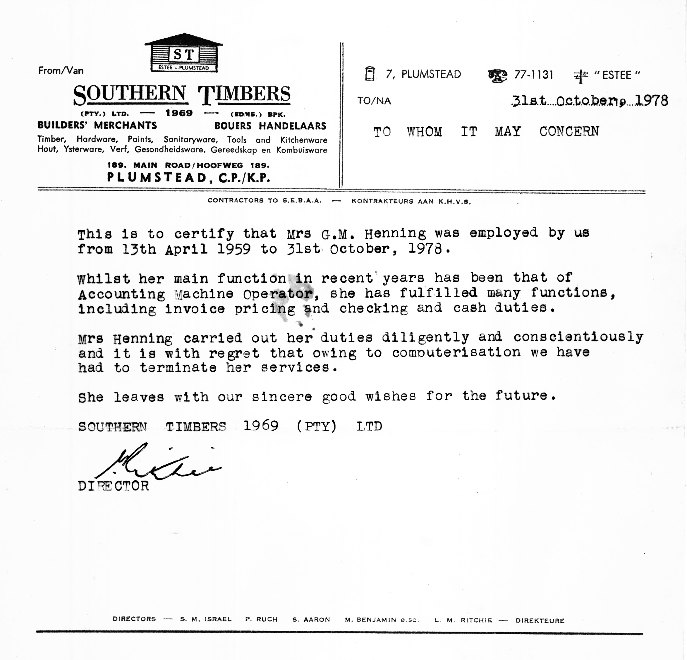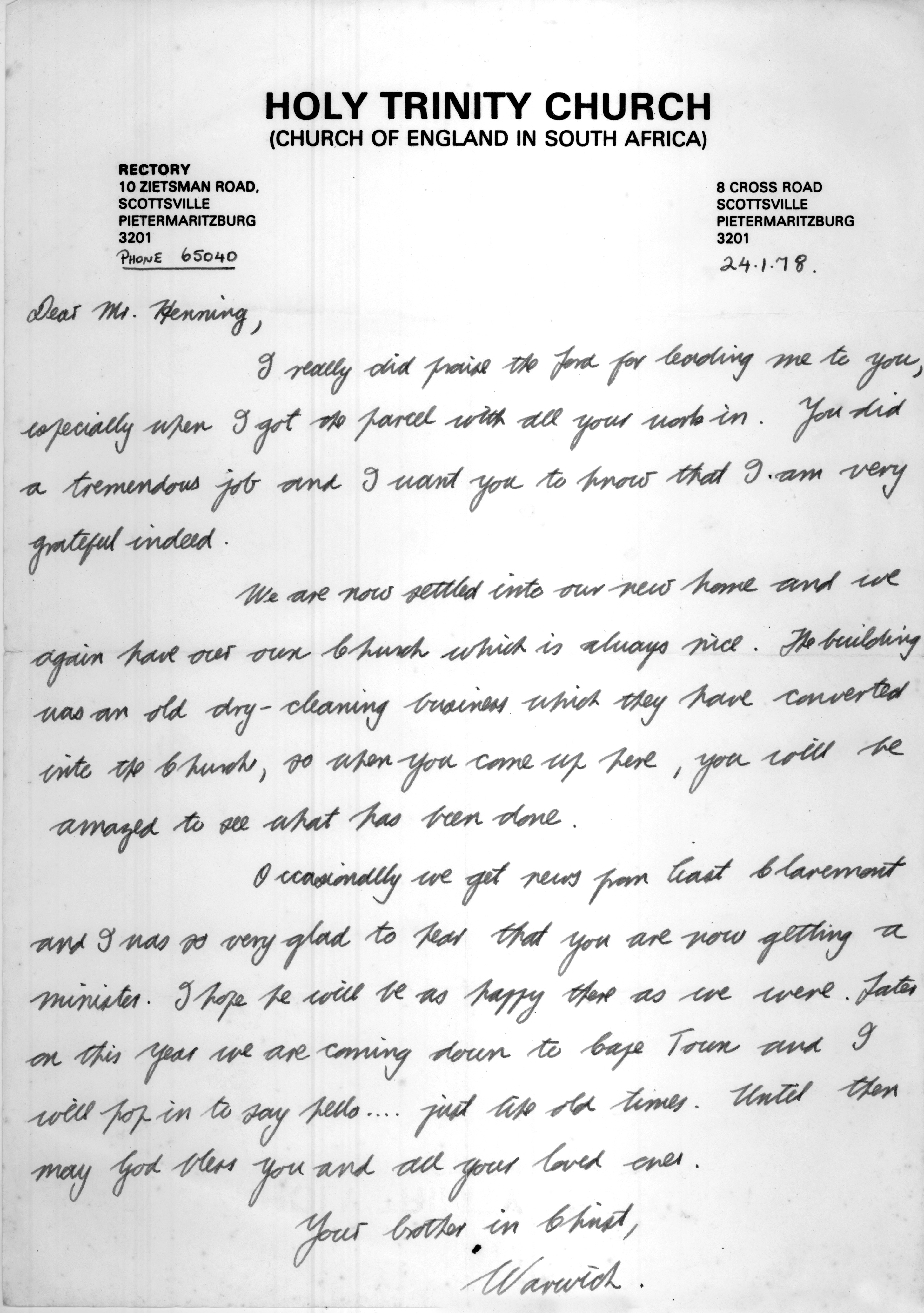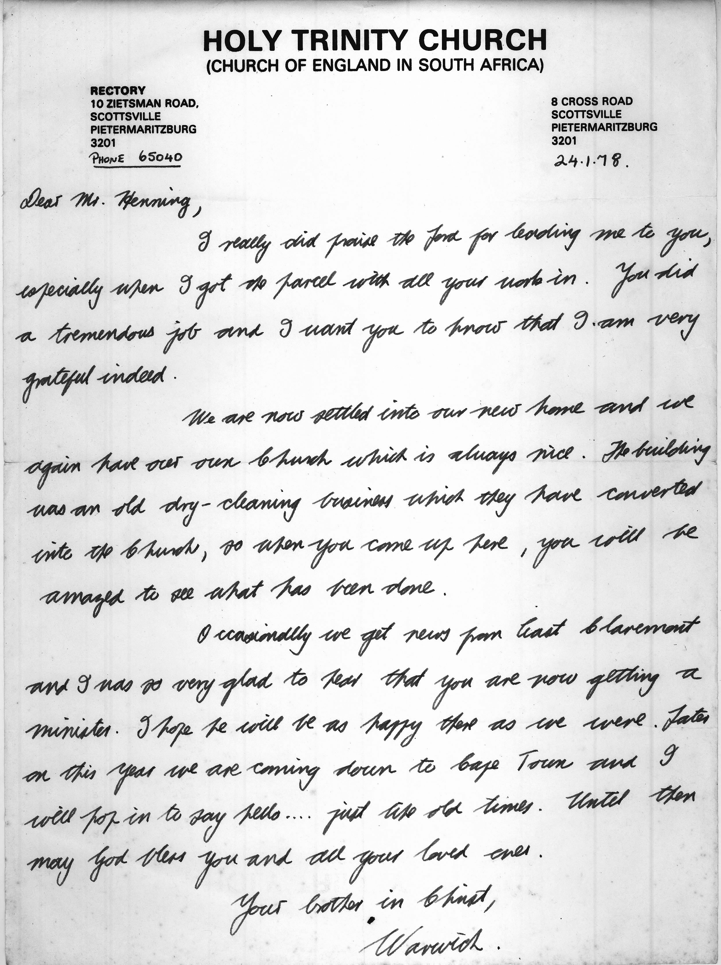 Warwich letter - 1978