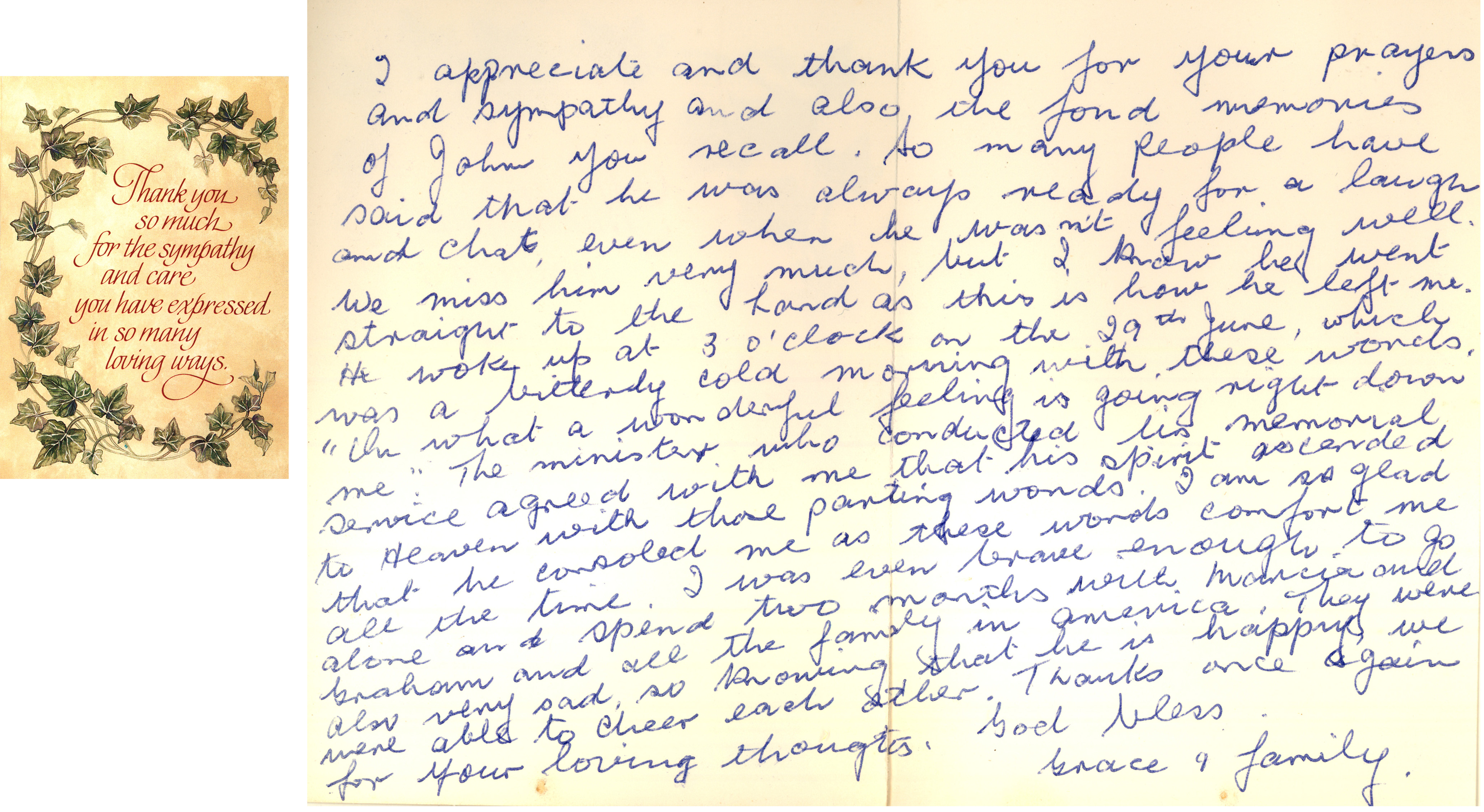 Card from John to Grace after his illness