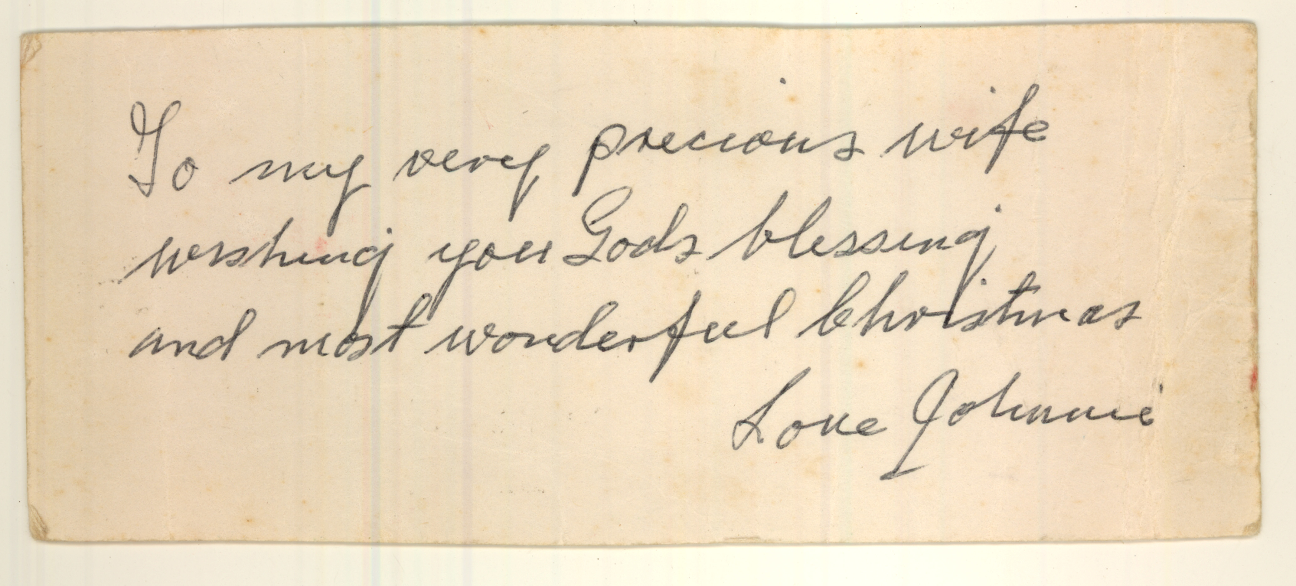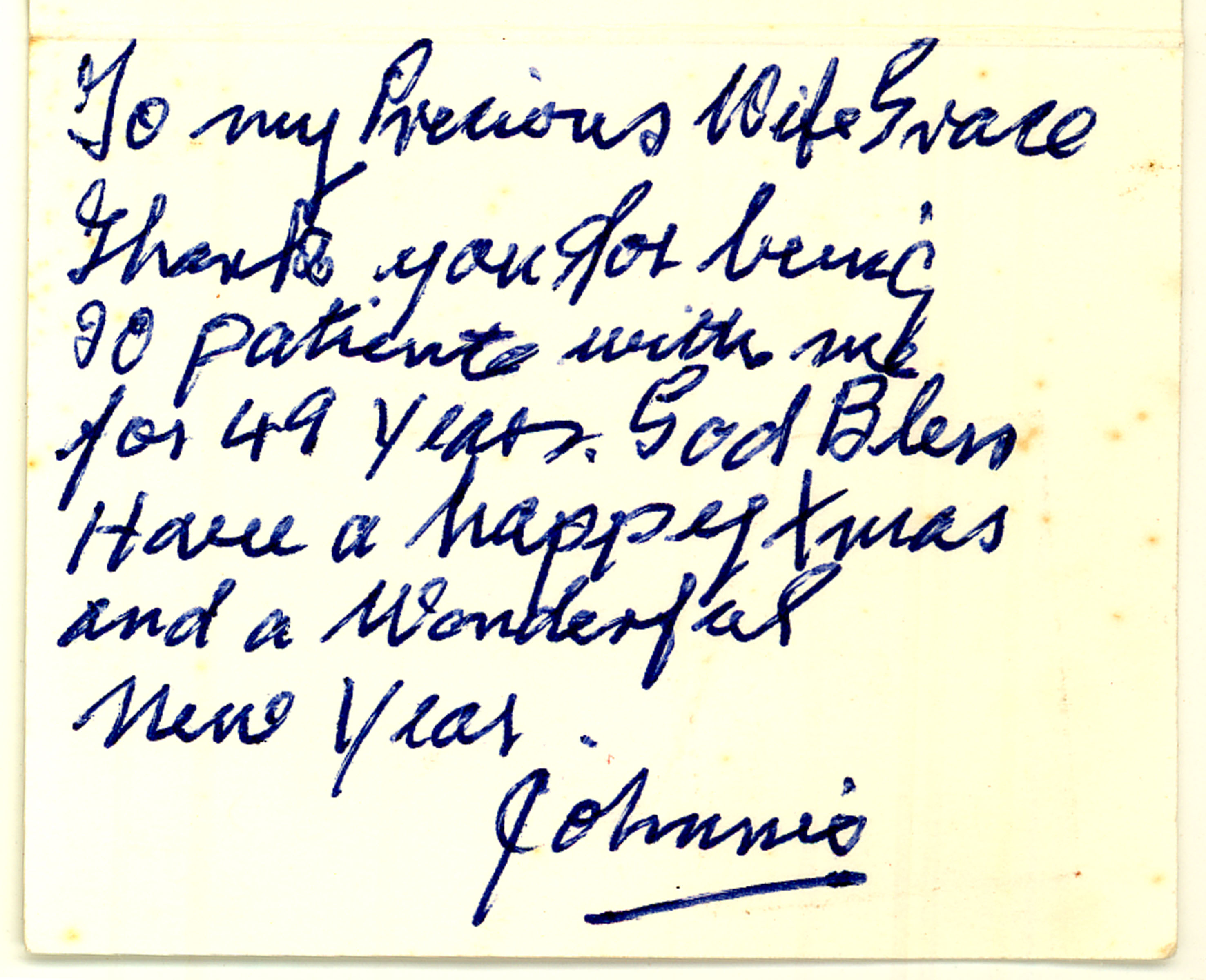 Johnnie note to Grace on wedding anniversary
