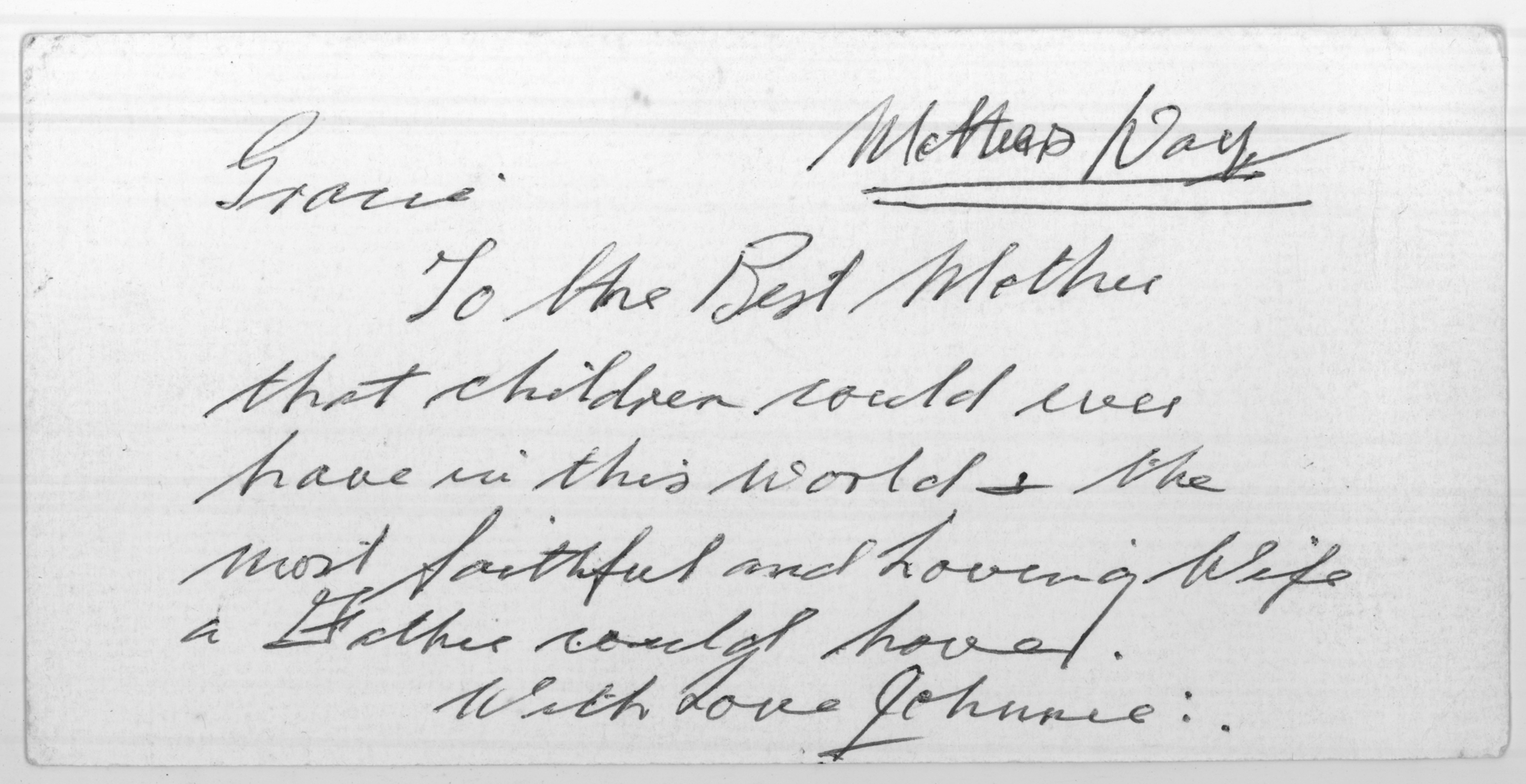 John's Mother' Day note to Grace