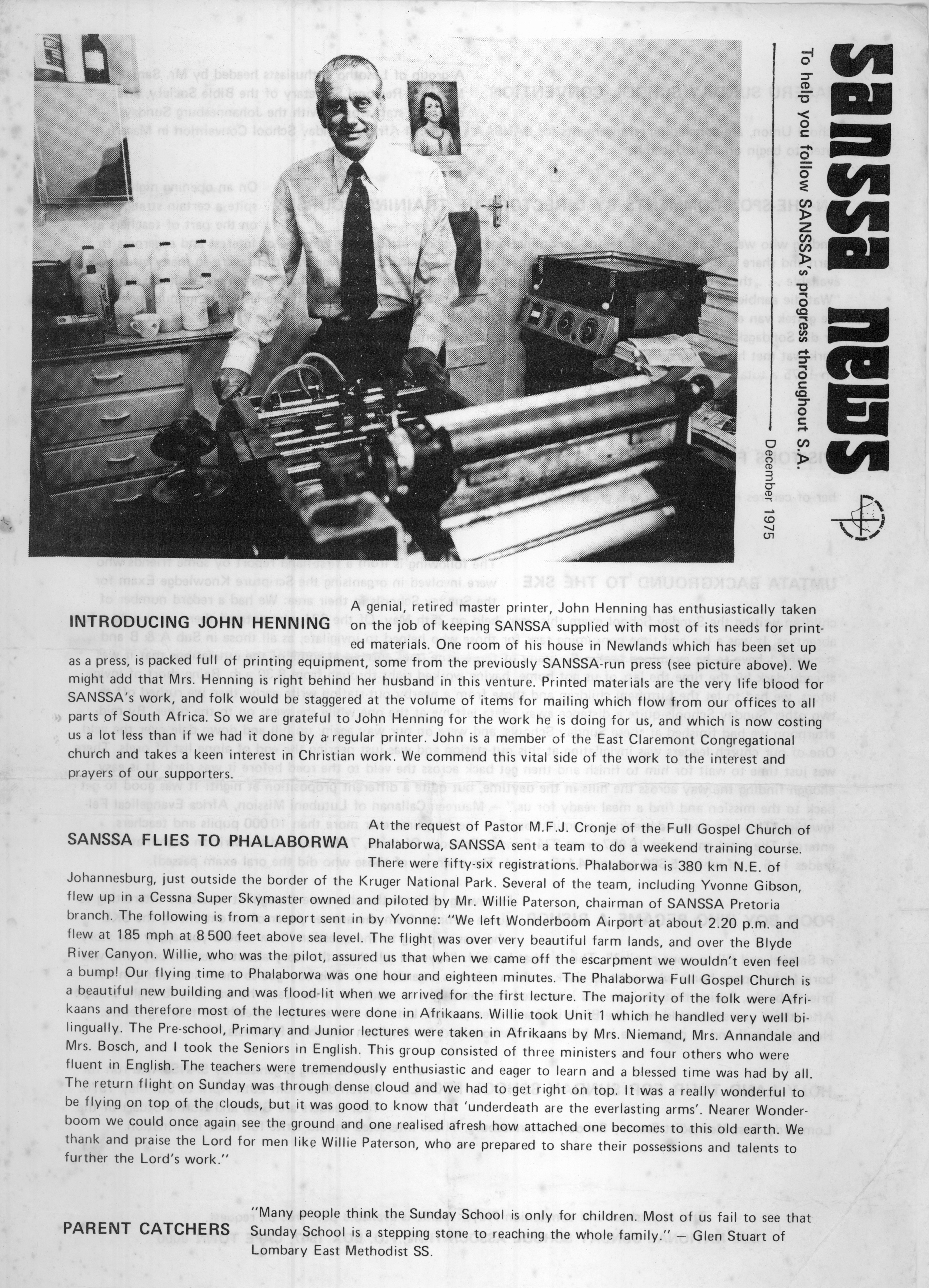 Article on John in South African Sunday School Association (SANSSA) newsletter
