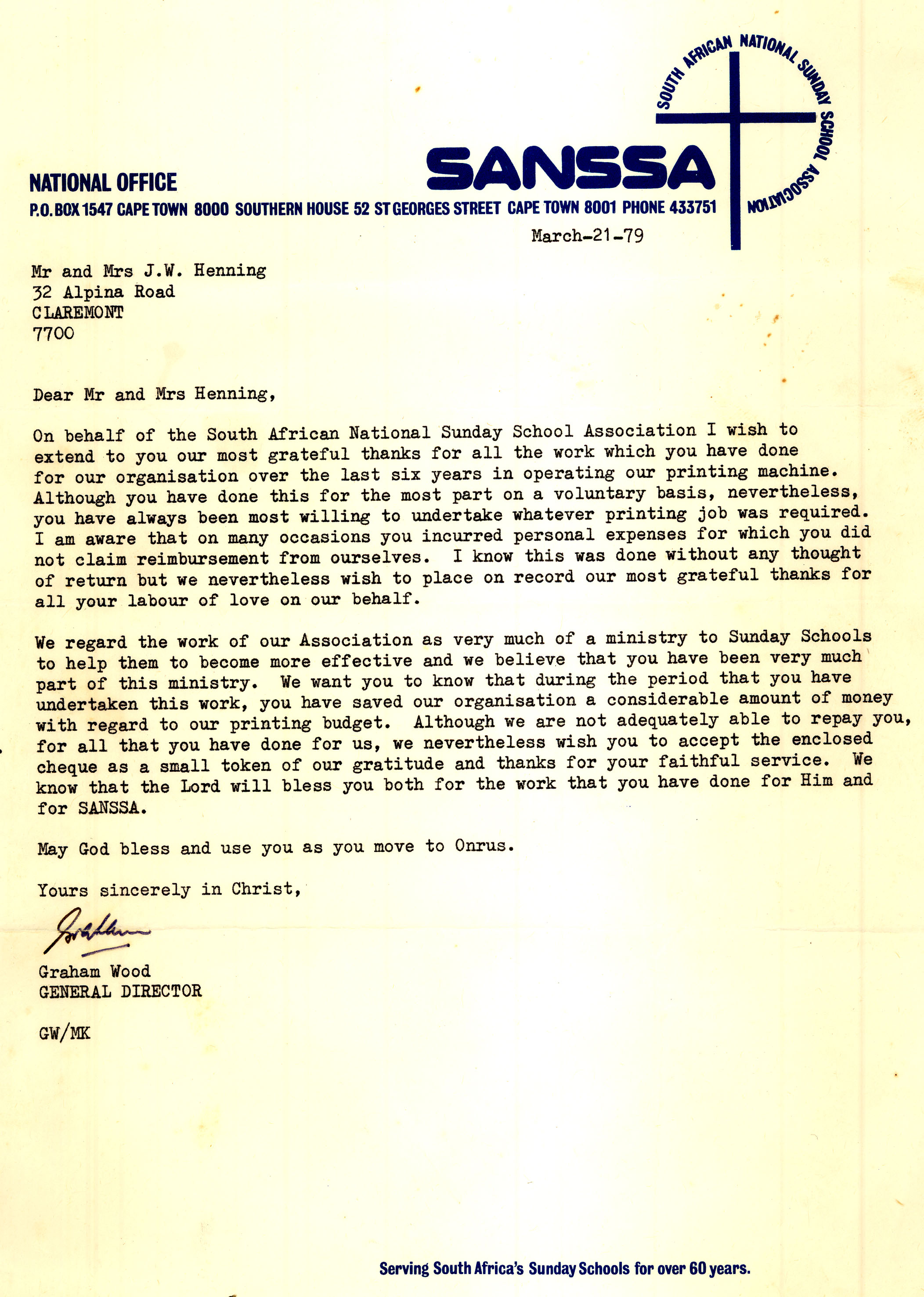 SANSSA letter thanking John for his work - 1