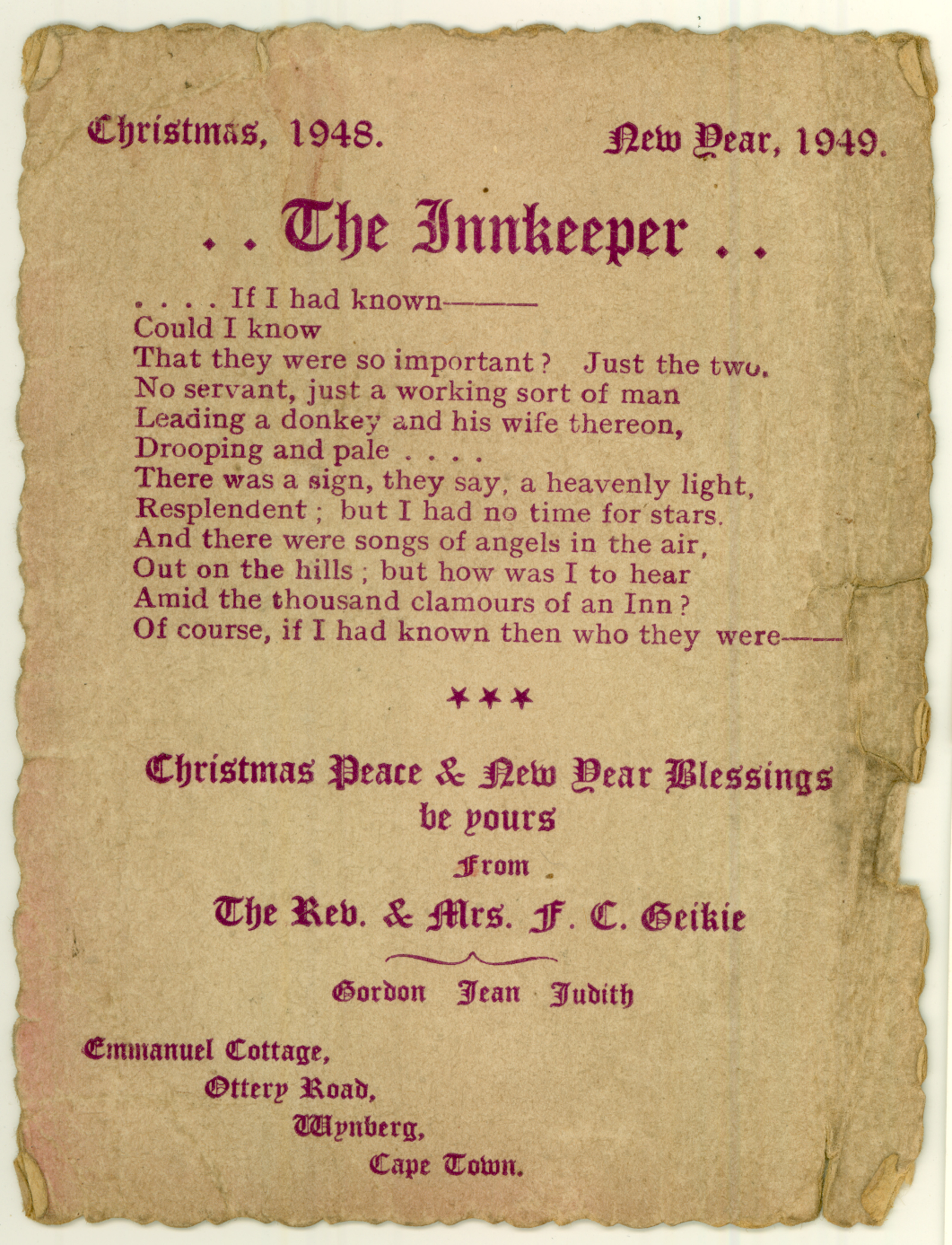 Card from Douglas and Winnie