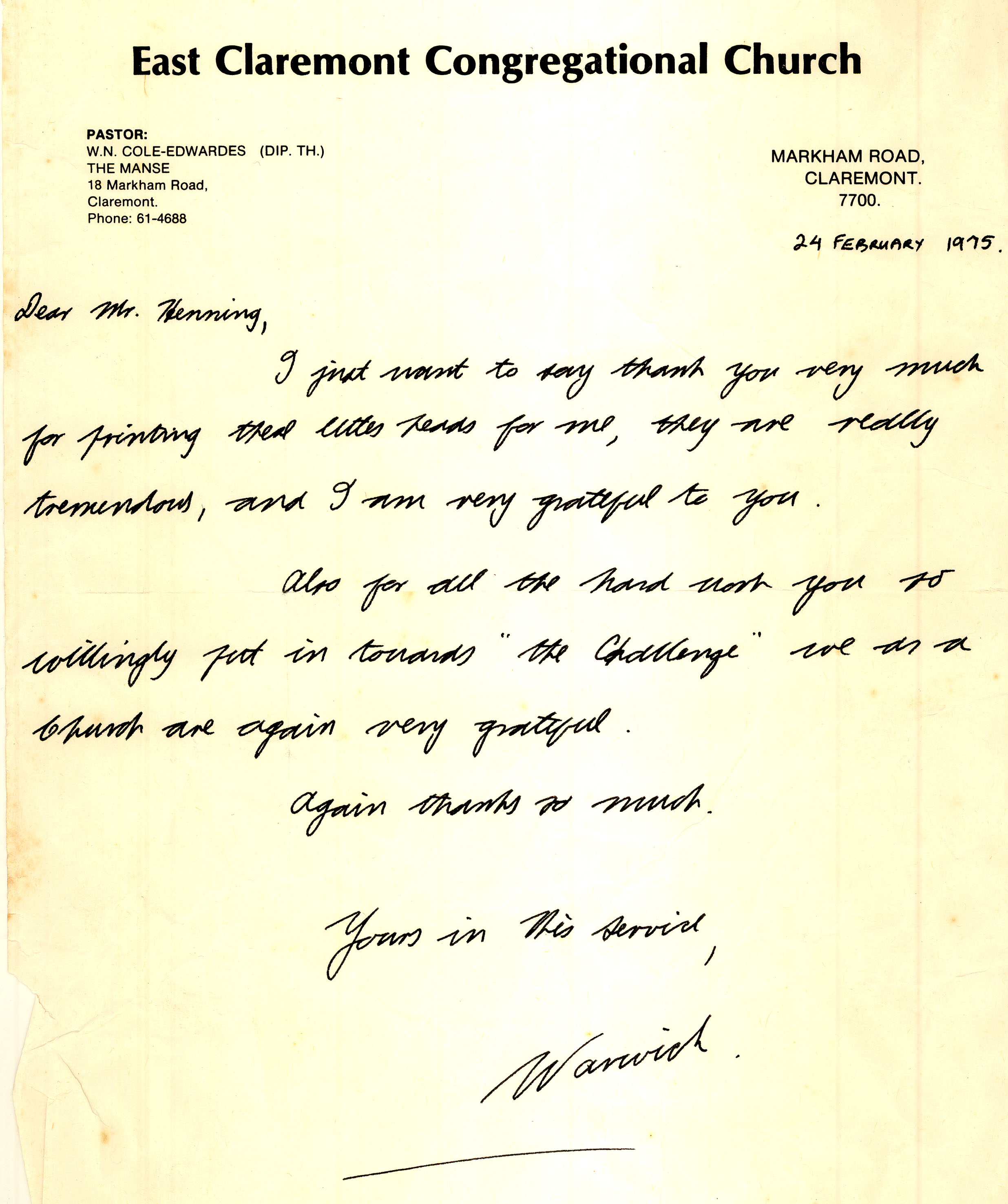 Warwich letter 1975